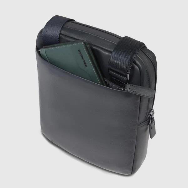 Borsello a tracolla linea Urban Piquadro, tracolla cucita, scompartimento intenro porta Ipad da 11″, realizzato in pelle, colore blu