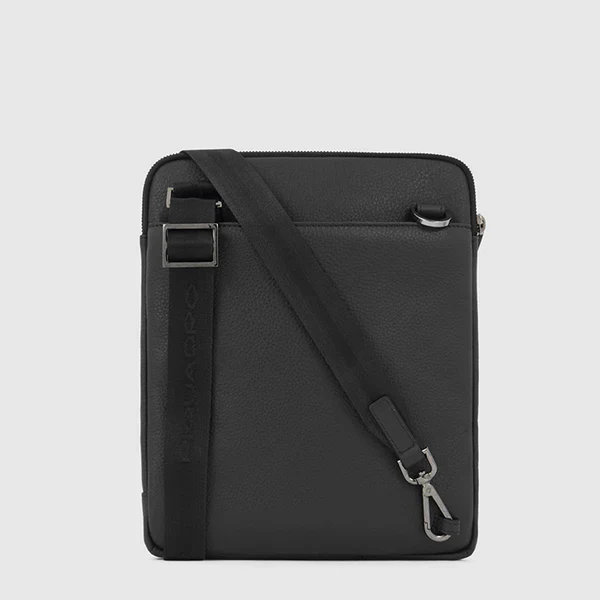 Borsello Piquadro realizzato in pelle linea MOS, scompartimento interno porta Ipad da 11″, tracolla cucinta, scompartimento con zip, colore nero
