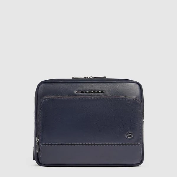 Borsello Piquadro, modello in pelle con scompartimento porta Ipad e tasca piquadro smart tracker, protezione antifrode rfid, multi scompartimento, colore blu