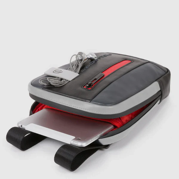 Borsello piccolo in pelle, organizzazione interna fissa, passante per cuffie, tracolla cucita senza logo, tasca porta cellulare esterna, chiusura singola con lampo, tasca porta oggetti fissa