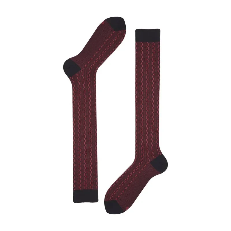 Calza lunga Red uomo, in cotone biologico, jacquard con pattern a zig zag. Colore rosso