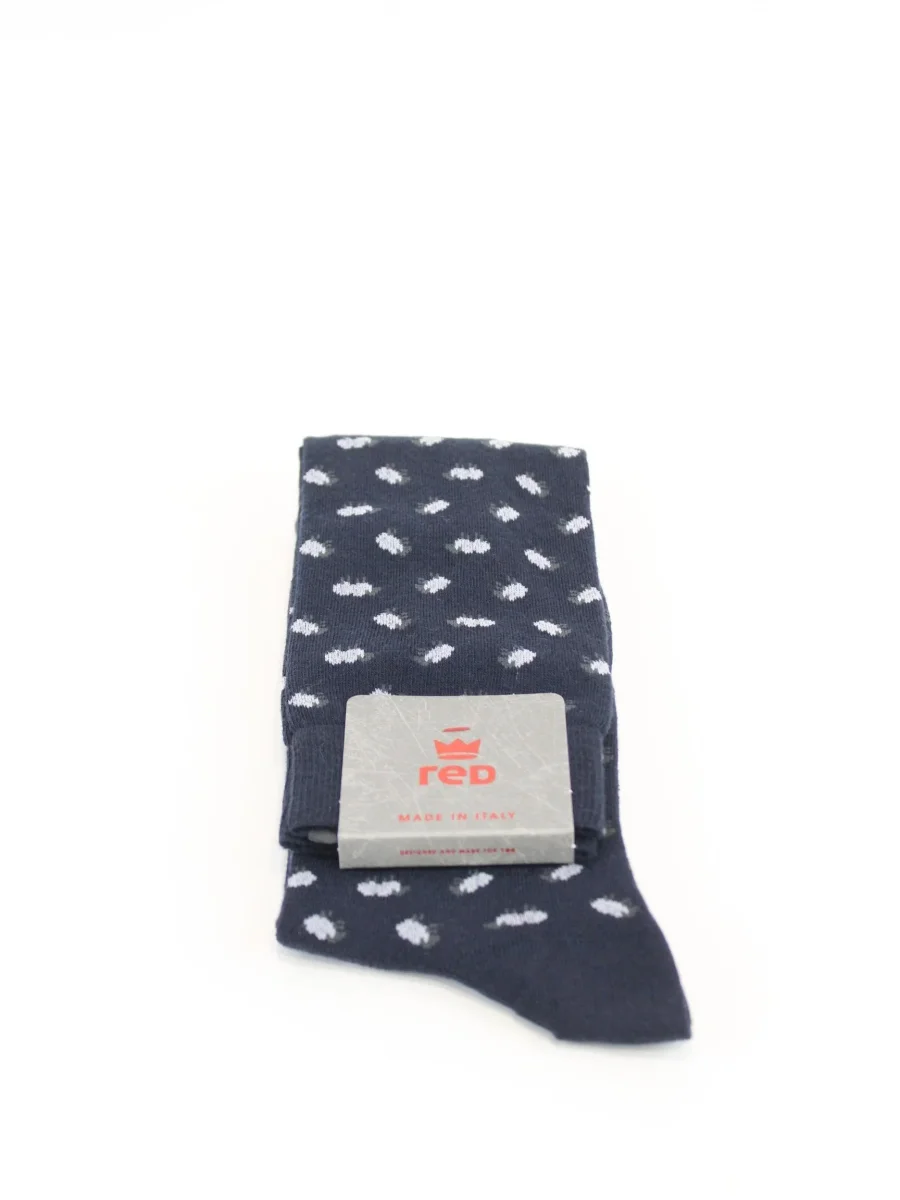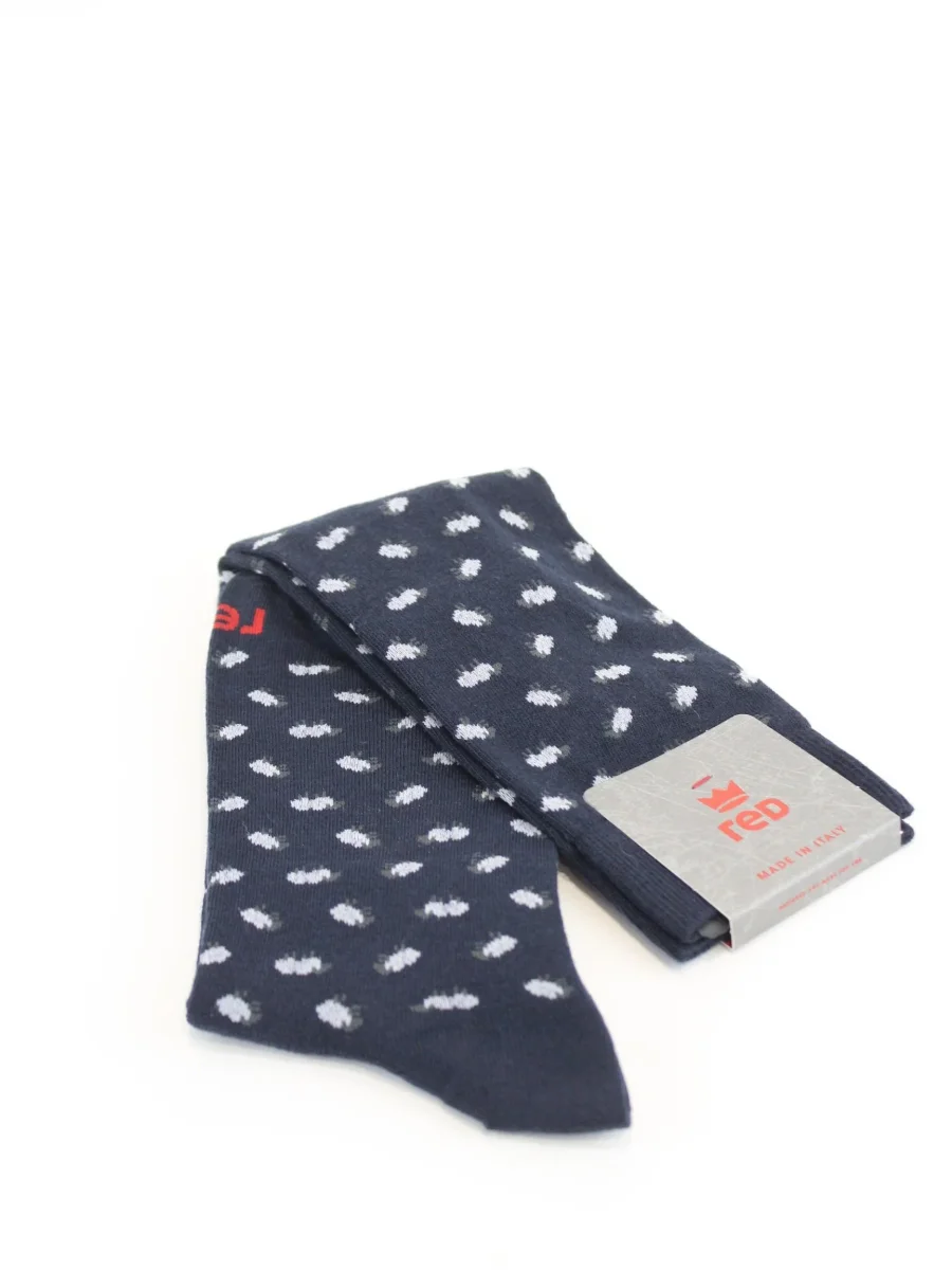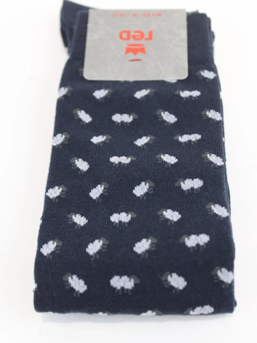 Calza lunga Red uomo, modello in cotone con logo in contrasto e fantasia pecorella in contrasto all over, colore blu