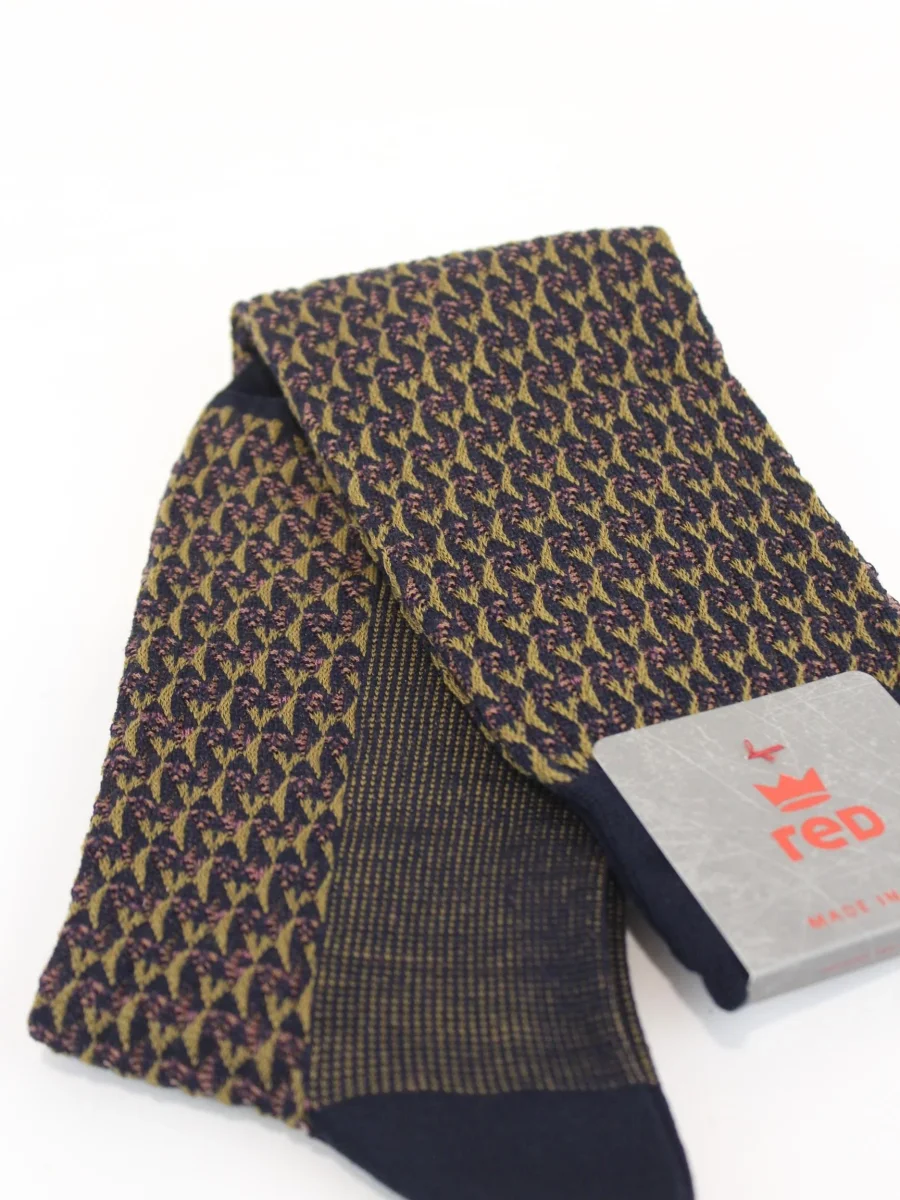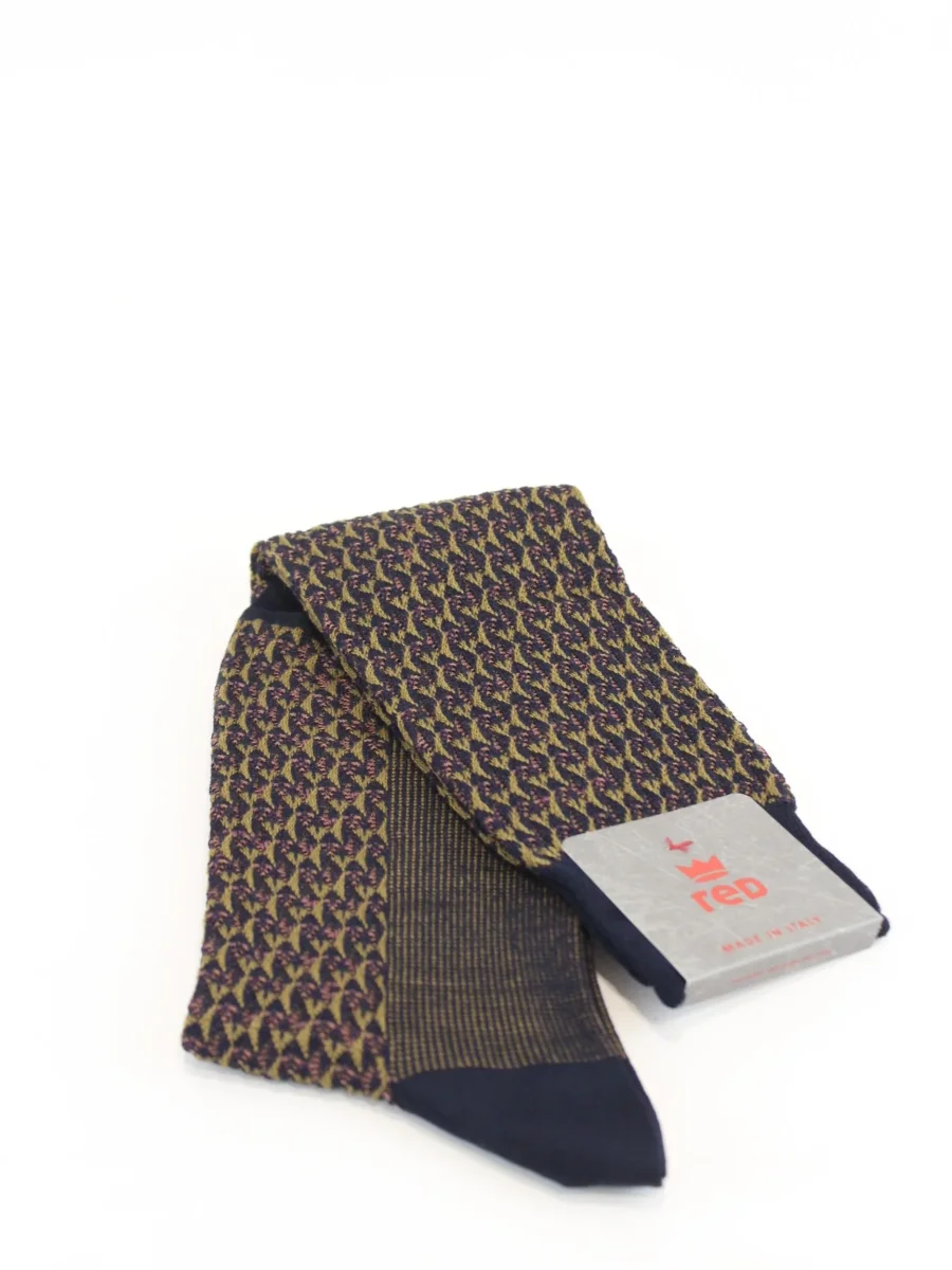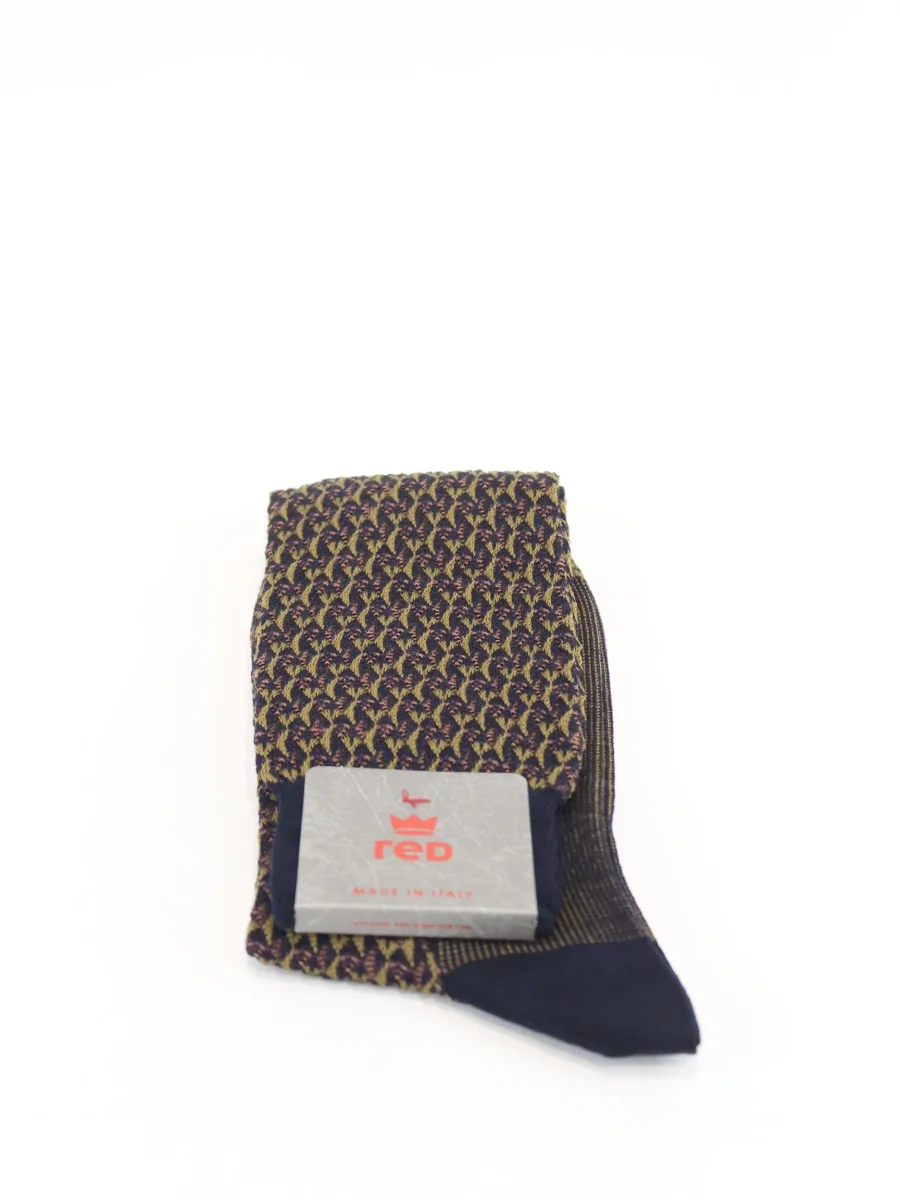 Calze Red uomo, modello lungo in lana con fantasia in contrasto, colore marrone