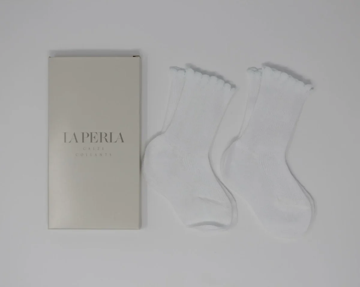 Due coppie di calzini neonato con perfilino azzurro e pacchetto regalo