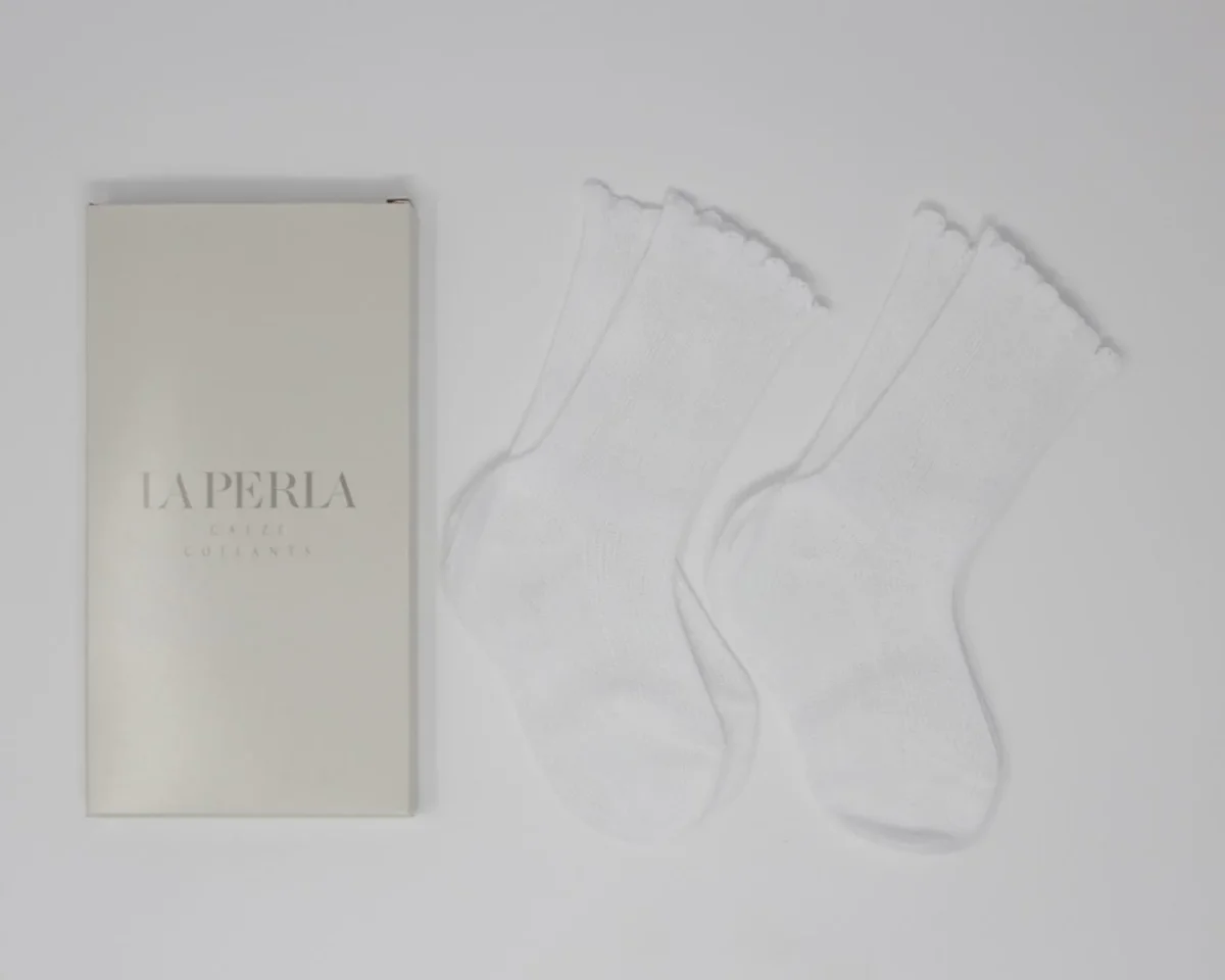 Due coppie di calzini neonato con perfilino bianco in tinta e pacchetto regalo
