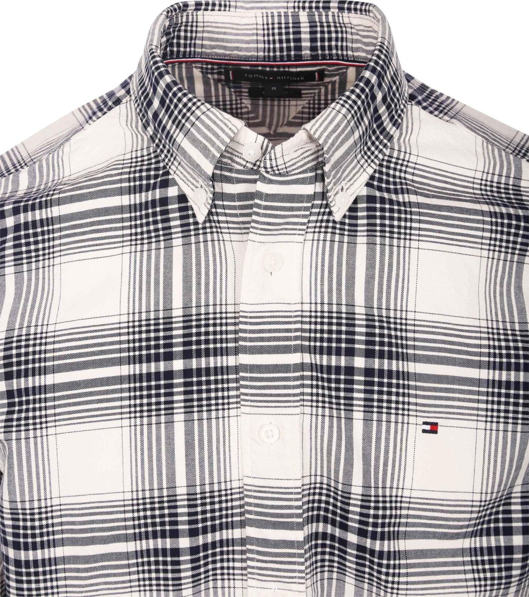 Camicia Oxford Tommy Hilfiger, modello a quadri blu, vestibilità regular, realizzata in cotone, logo ricamato sul petto ed in contrasto