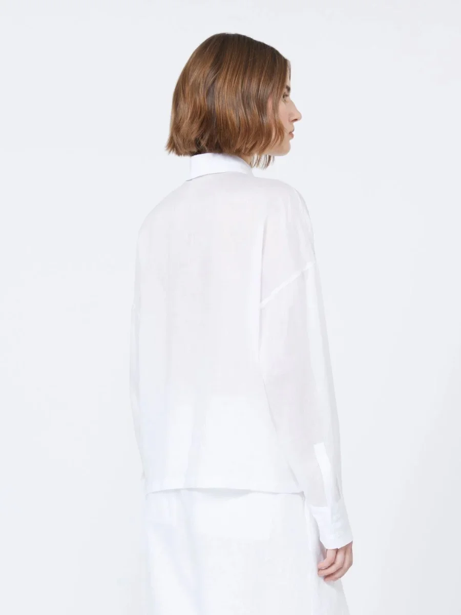 Camicia Max Mara Studio, modello in tela ramiè, colletto e polsini a camicia, maniche lunghe a giro basso, chiusura frontale nascosta con bottoni, colore bianco