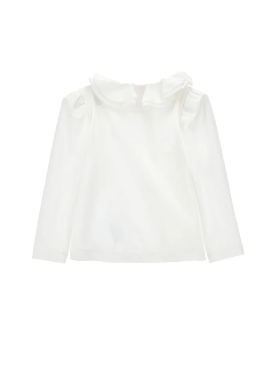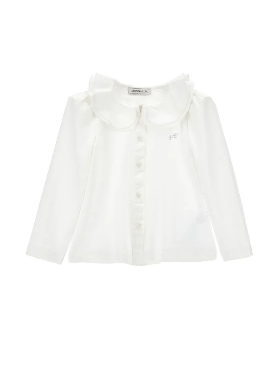 Camicia a maniche lunghe, modello con colletto decorativo, apertura con bottoni, logo in contrasto, colore bianco