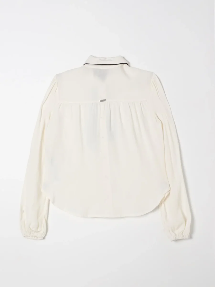Camicia Liu Jo Junior, modello regular fit, collo classico, vestibilità regular fit, maniche lunghe, chiusura con bottoni. Dettaglio cravatta removibile in contrasto