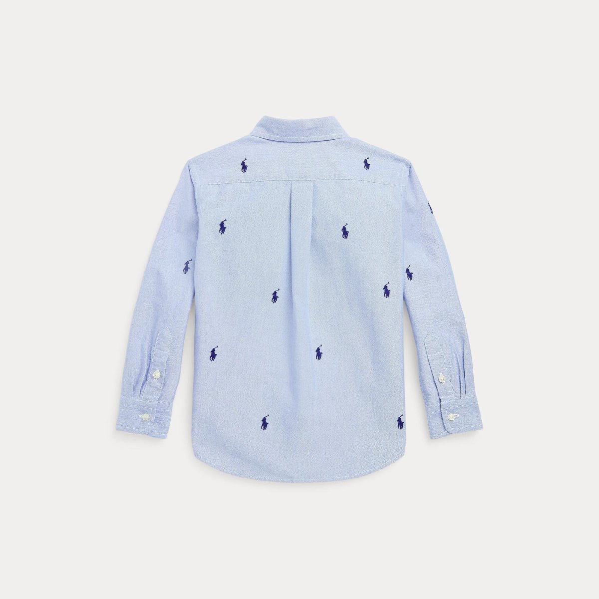 Camicia in cotone Oxford Ralph Lauren, modello ricamato in contrasto all over, chiusura con bottoncini, colore azzurro