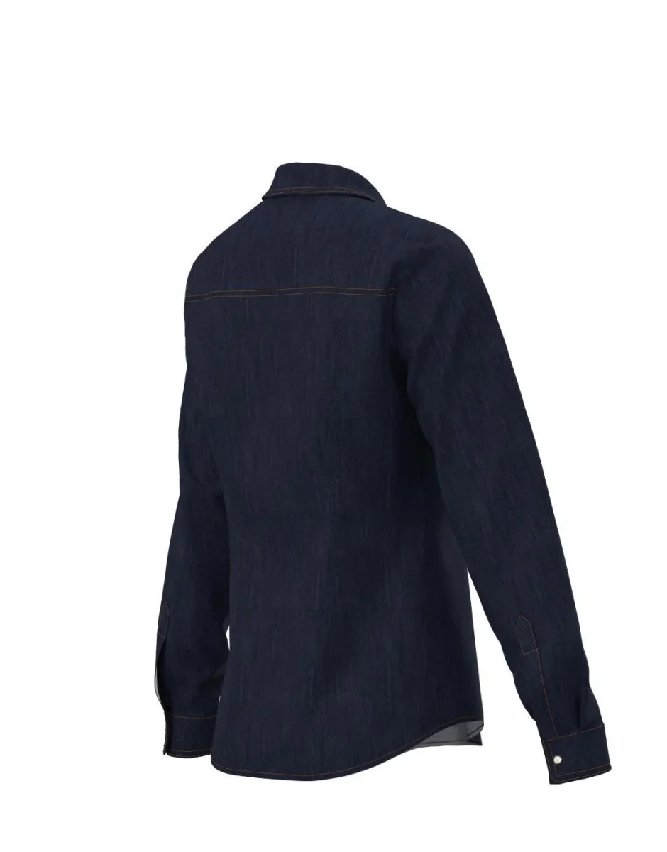 Camicia Emme Marella, fit leggermente aderente, collo a camicia, bottoni a vista sul davanti, tasche applicate sul retro con patta e bottone, colore blu