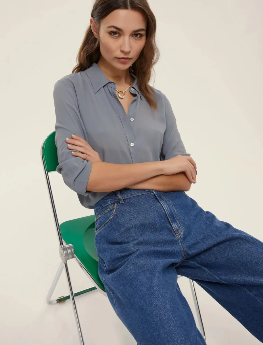 Camicia in misto seta Emme Marella, modello in crepe de chine, collo a camicia con abbottonatura a vista, maniche lunghe con bottoni al polso, colore carta di zucchero