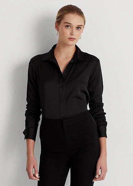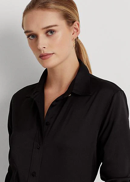 Camicia Lauren di Ralph Lauren, collo a punta, cannoncino con bottoni incisi, maniche lunghe con polsini. Colore marrone, vestibilità morbida e lunghezza ai fianchi