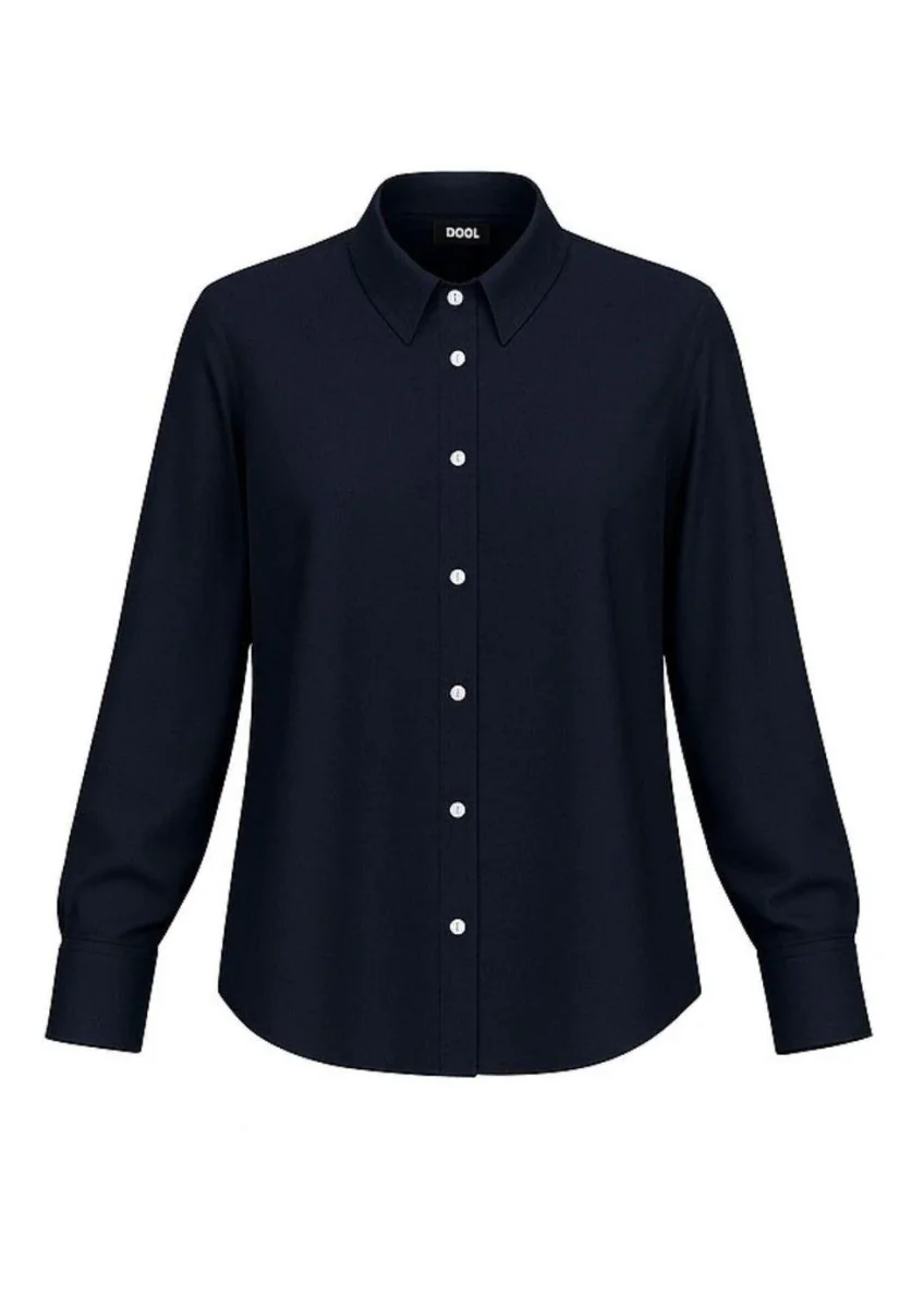 Camicia Emme Marella Naples, modello in raso leggero stretch, collo a camicia e chiusura con bottoni a vista, maniche lunghe con bottone, colore blu