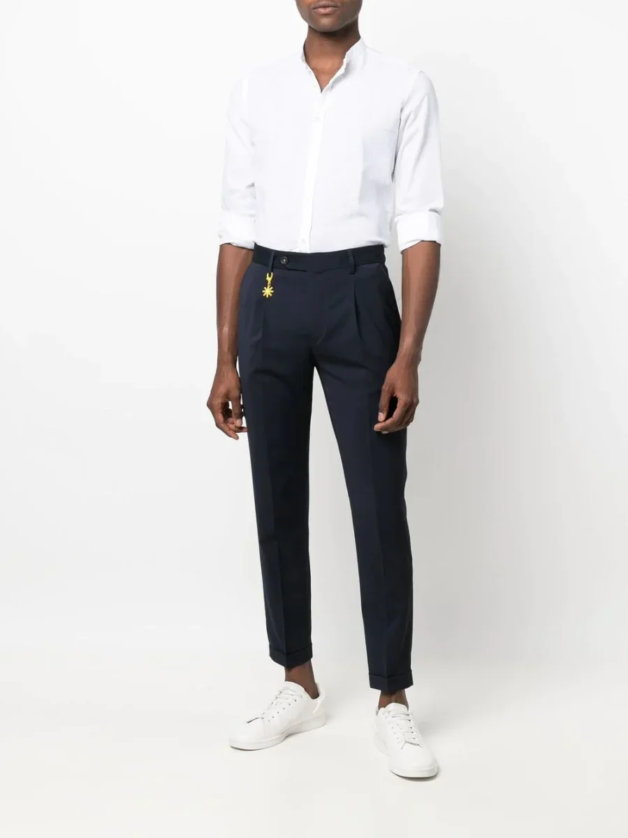 Camicia Manuel Ritz uomo, colletto alla coreana, maniche lunghe, chiusura con bottoncini. Colore bianco
