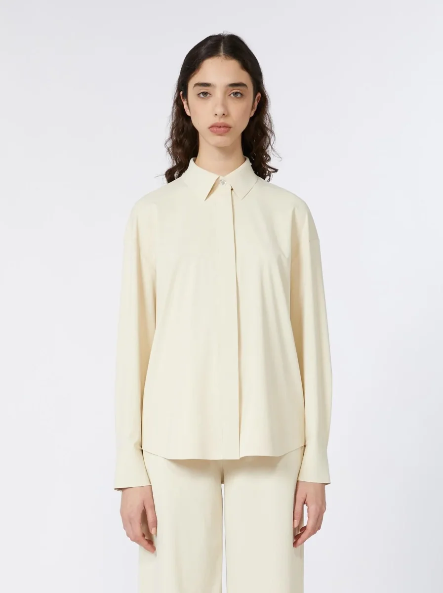 Camicia MM, modello in jersey tecnico, colletto regolare, maniche lunghe e chiusura nascosta sul davanti, colore bianco