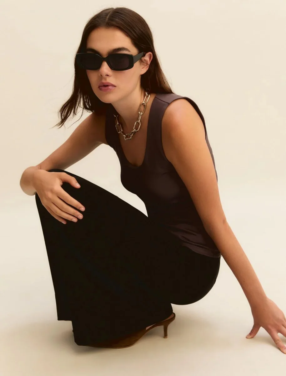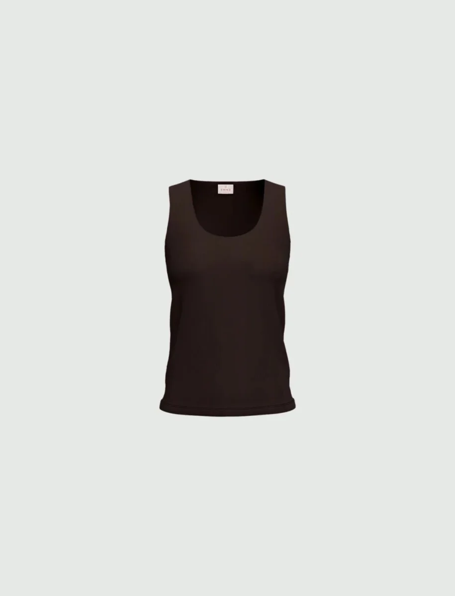 Canotta Emme Marella, modell in jersey interlock stretch, fit aderente e scollo profondo, colore testa di moro