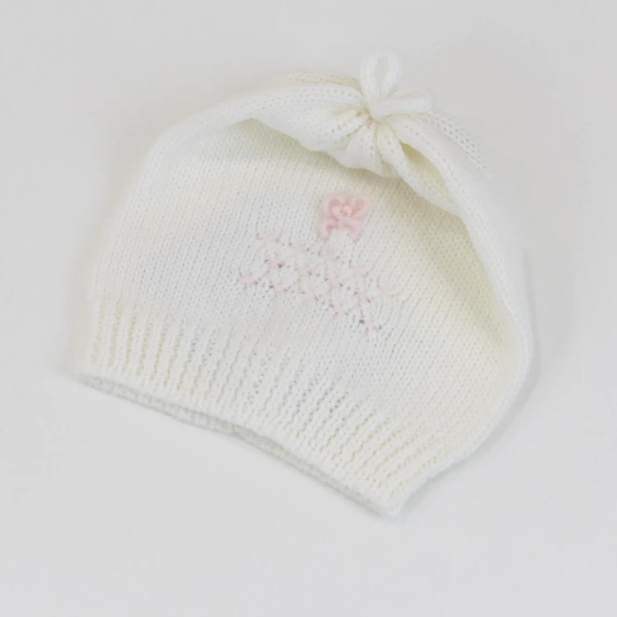 Cappellino di lana Piccola Giuggiola, modello gransasso per femminuccia, elasticizzato e dettaglio fatto a mano in contrasto al centro