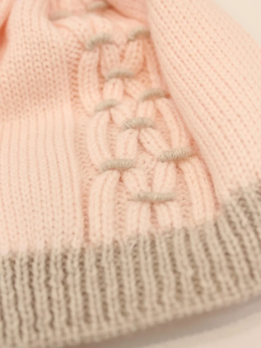 Cappellino nascita Piccola Giuggiola, modello Timeo, realizzato in lana con dettagli fatti a mano e made in Italy, dettagli in contrasto