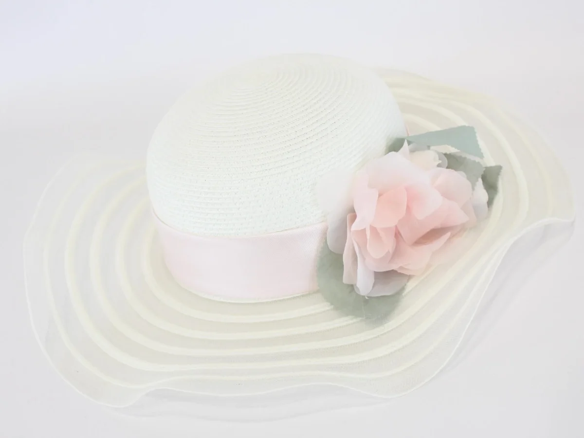 Cappello cerimonia Modì cerimonia, modello con fascia in raso applicata in contrasto, fiore in contrasto rosa