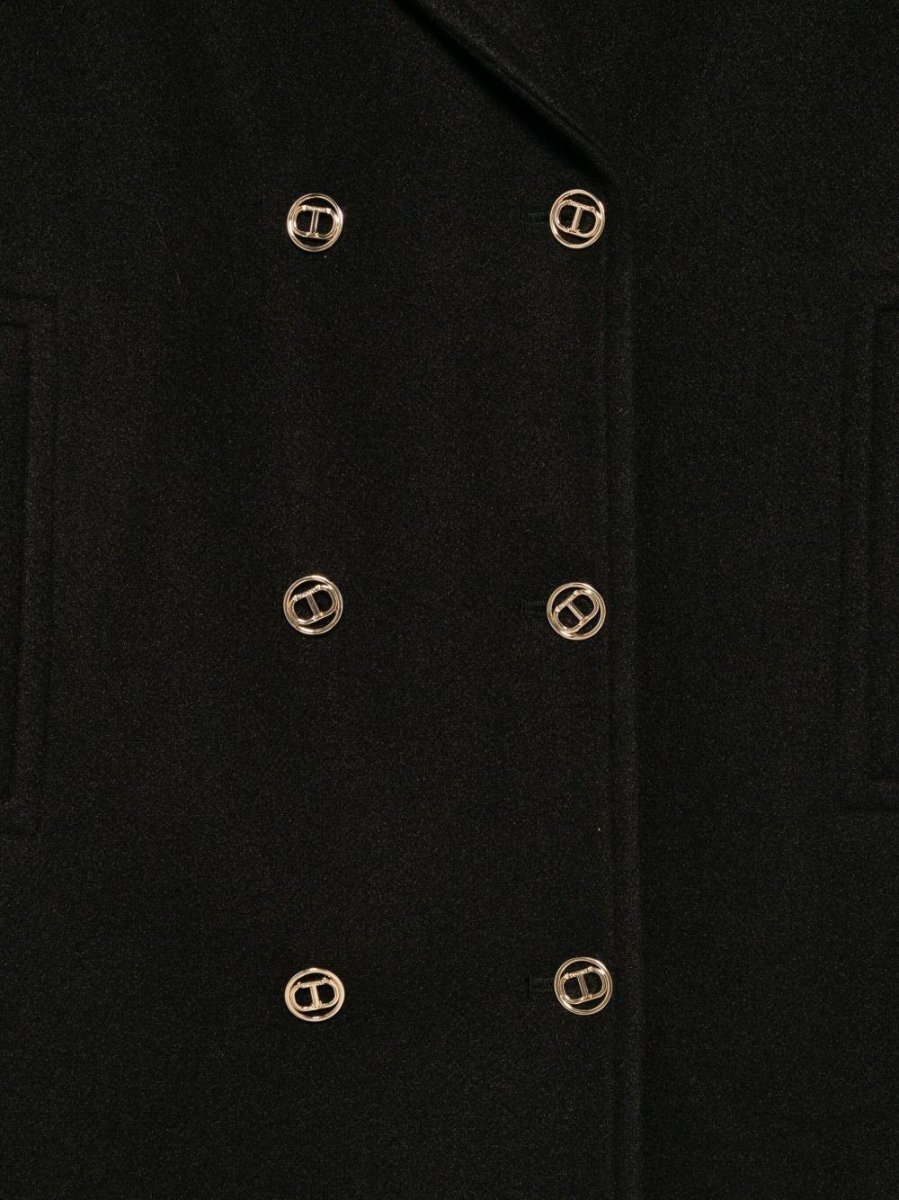 Cappotto con chiusura doppiopetto Twinset Girl, bottoni logati color oro, revers a lancia, tasche a filetto, colore nero