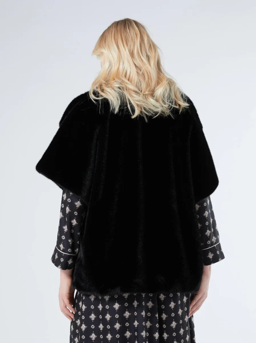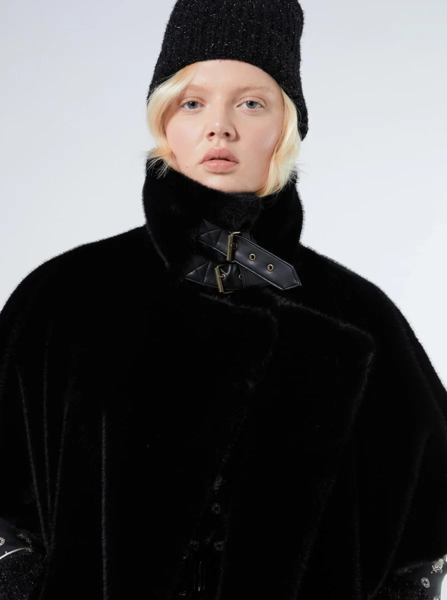Cappotto Marina Sport, texture soffice, linea ampia, collo in piedi con alamari, chiusura asimmetrica con bottone a pressione, tasche a filettone davanti, colore nero