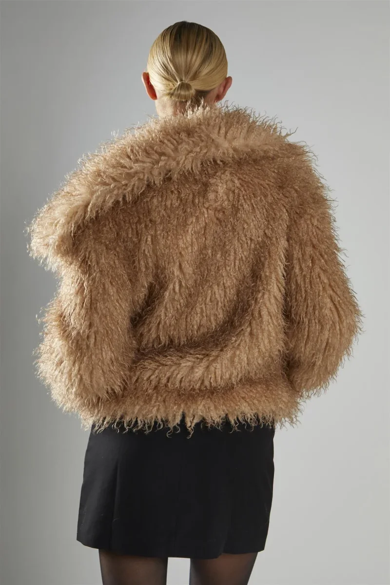 Cappotto in pelliccia donna Glamorous, modello realizzato in pelliccia sintetica, collo over size e vestibilità corta, colore caramello