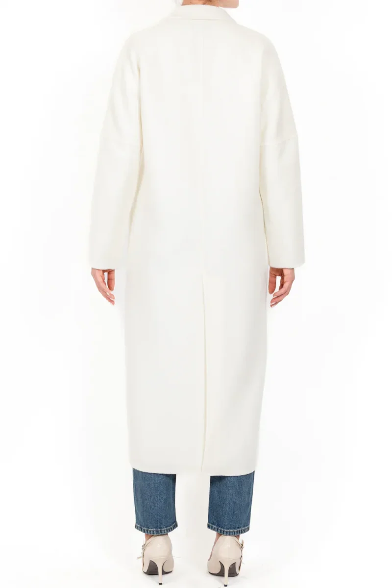 Cappotto lungo in misto lana Vicolo, collo a revers e maniche lunghe, tasche anteriori applicate, chiusura frontale doppiopetto a tre bottoni, colore bianco
