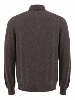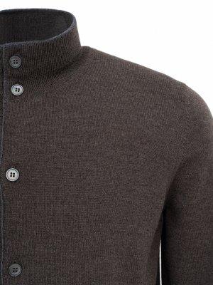 Cardigan Gransasso uomo, modello in pura lana merino extrafine con chiusura 8 bottoni, profili in contrasto colore sul collo a lupetto, fashion fit, colore tortora scuro