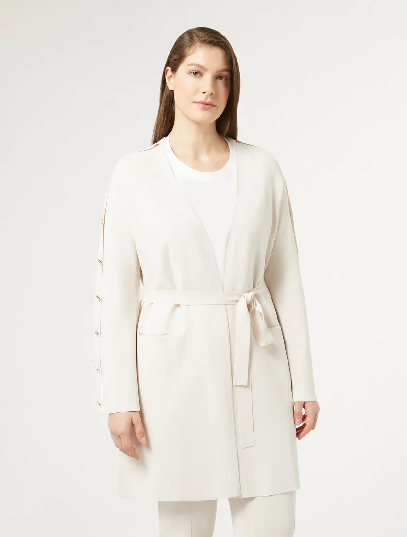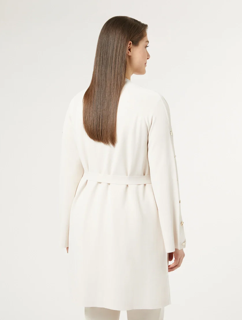 Cardigan Marina Rinaldi Walk, modello in viscosa opaca comfort, linea dritta, scollo a V, maniche lunghe raglan con apertura bottoni, colore bianco