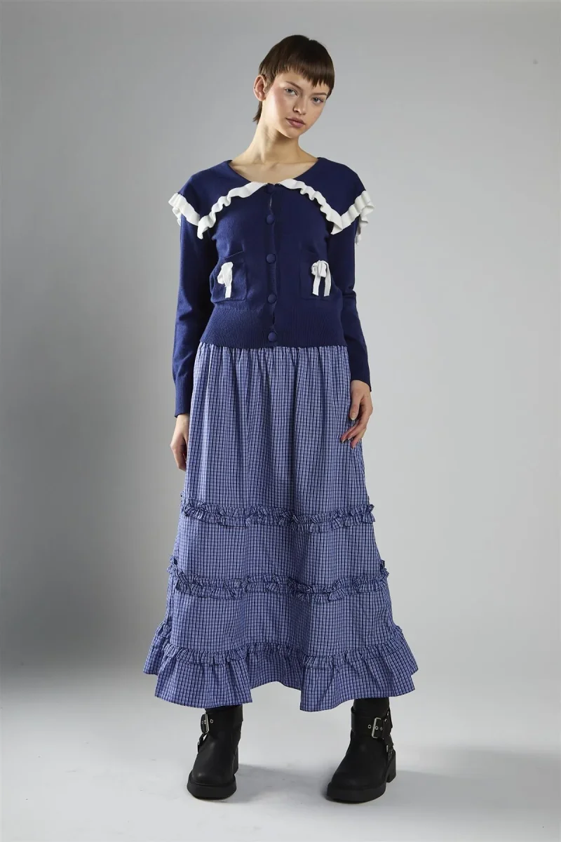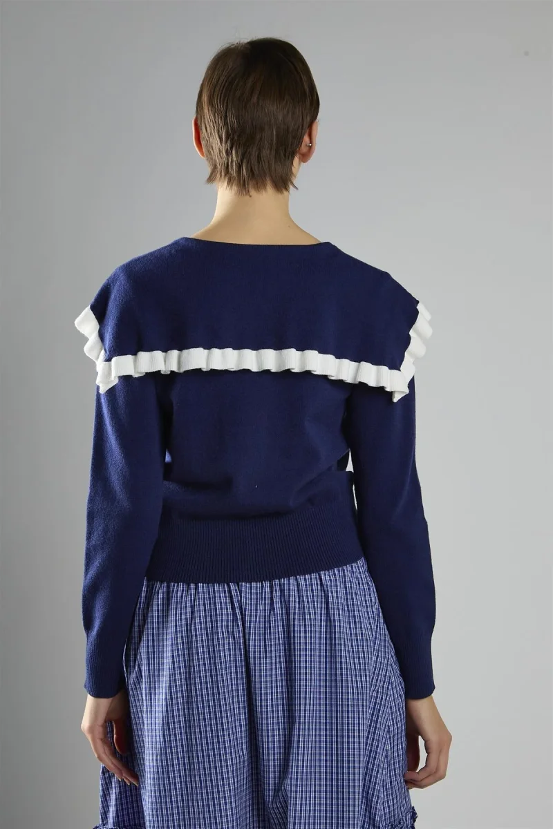 Cardigan con colletto oversize, orlo in colore a contrasto, colore blu navy