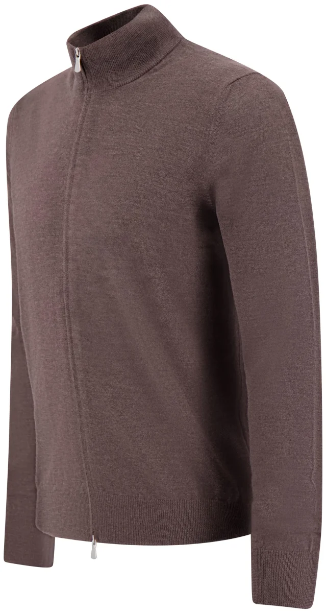 Cardigan full zip Gran Sasso, chiusura full zip, collo alto, maniche lunghe, realizzato in lana, vestibilità regular