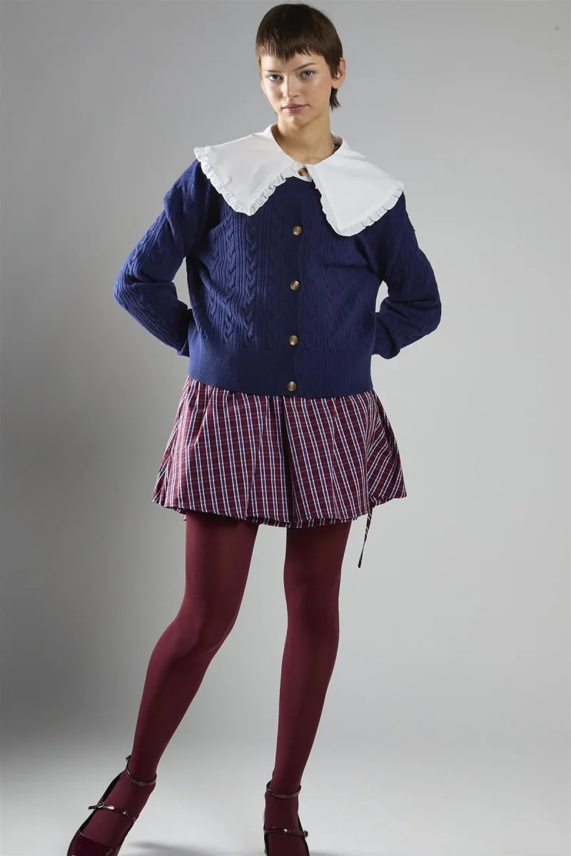 Cardigan donna Glamorous, modello in maglia con colletto a balze, patta con bottoni e chiusura bottoncini, colore blu navy