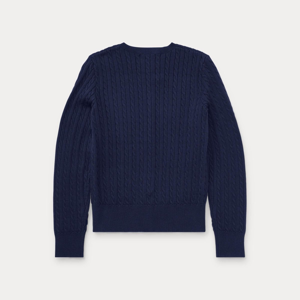 Cardigan a trecce Ralph Lauren bimba, realizzato in maglia di cotone, con iconico pony in contrasto sul petto, colore blu