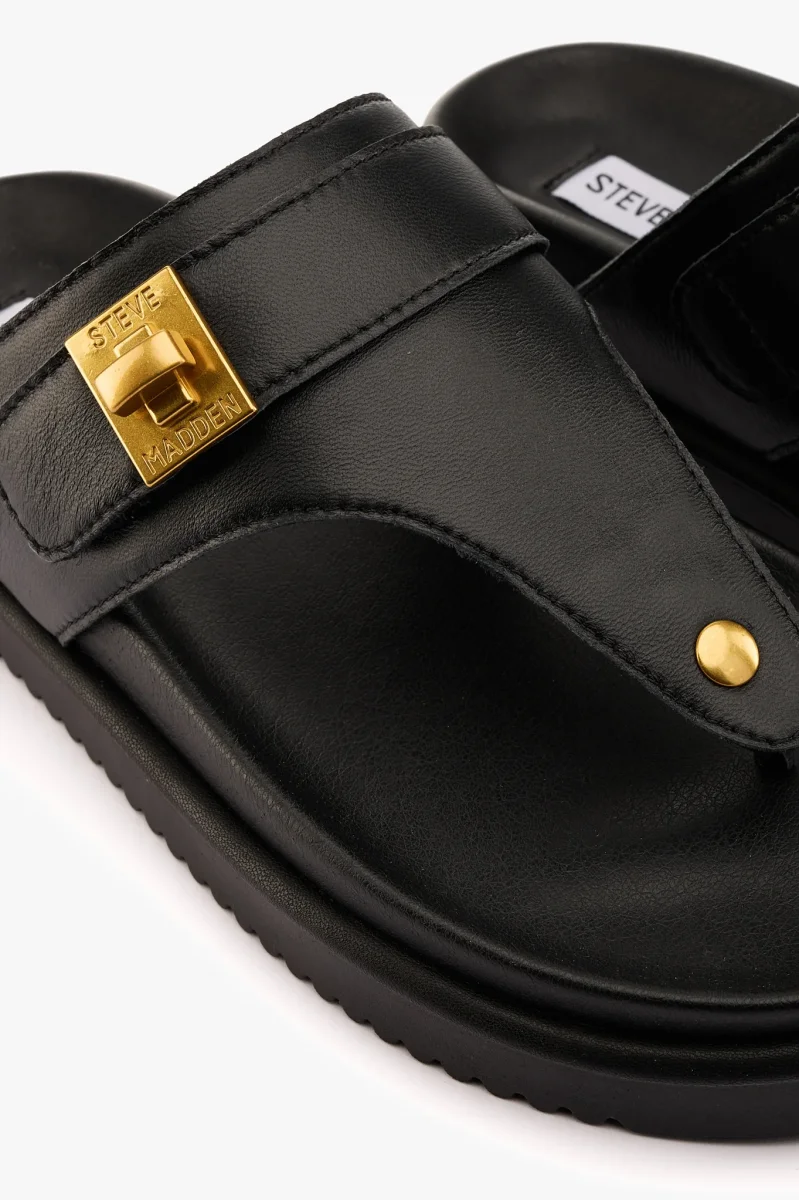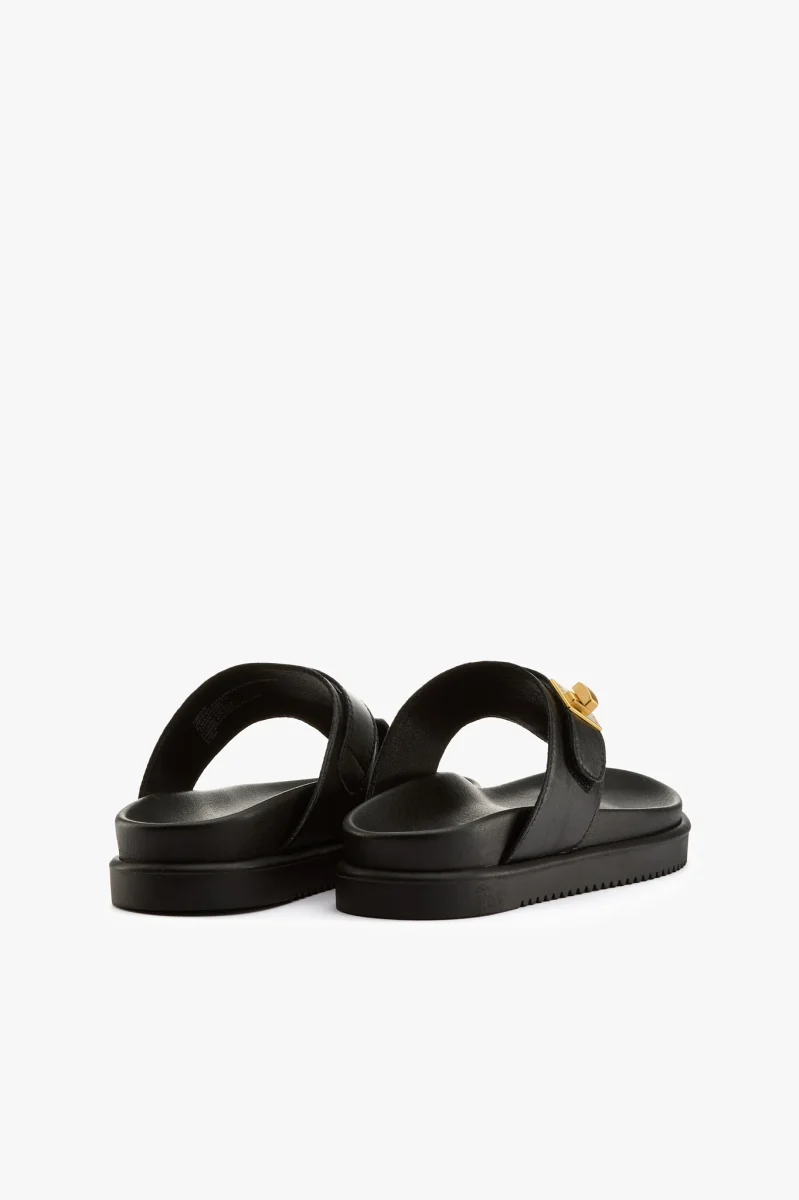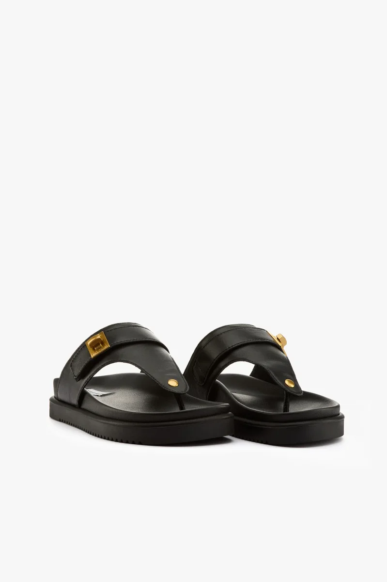 Ciabatta infradito in pelle nera con dettaglio color oro