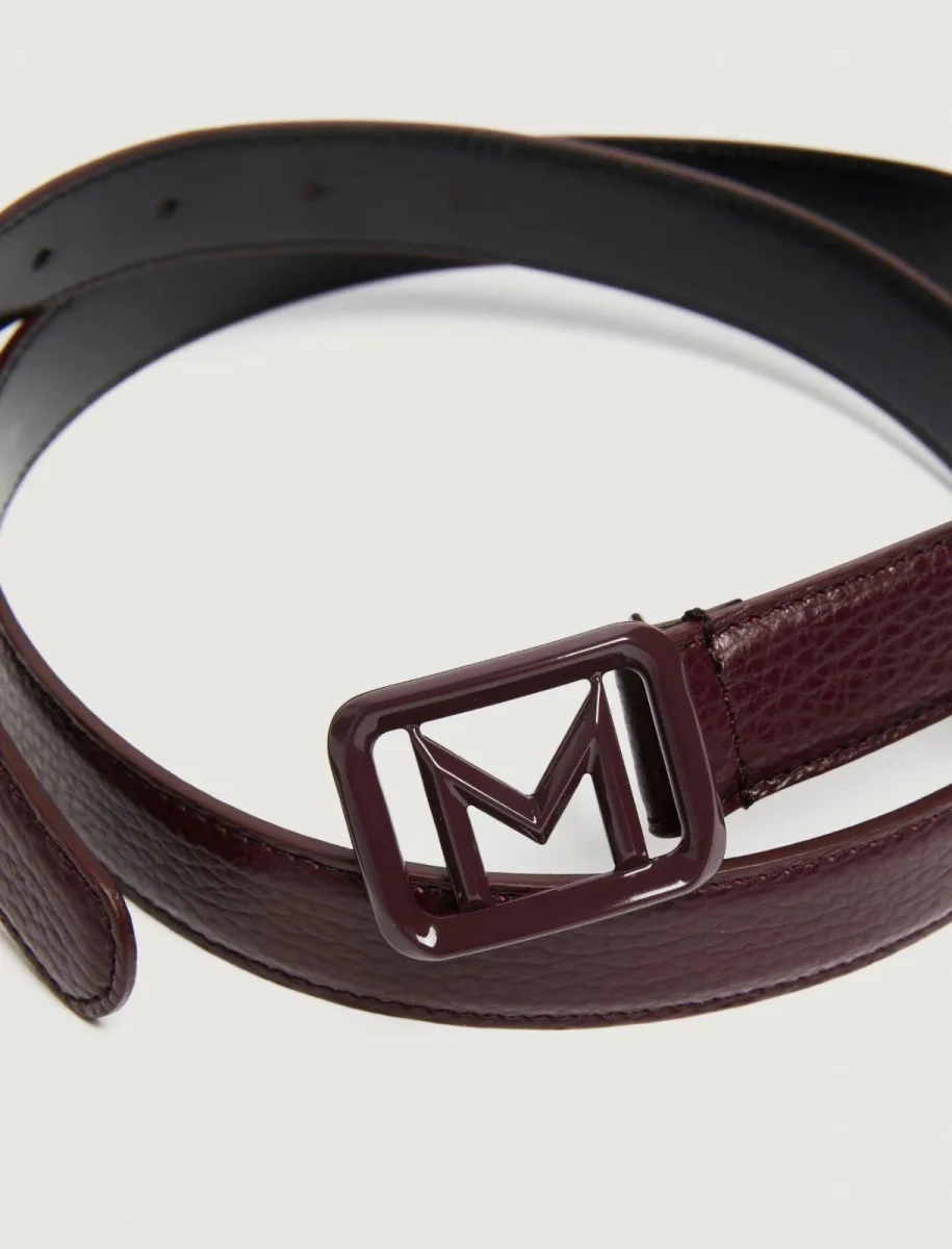 Cintura in pelle verniciata, fibbia logo in metallo, altezza 2,5 cm. Colore bordeaux