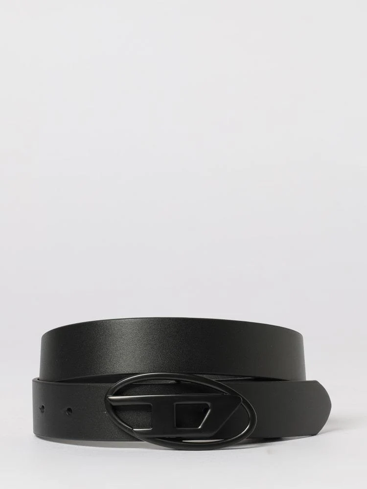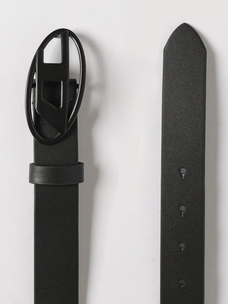 Cintura in pelle Diesel, modello con logo Oval in contrasto, colore nero