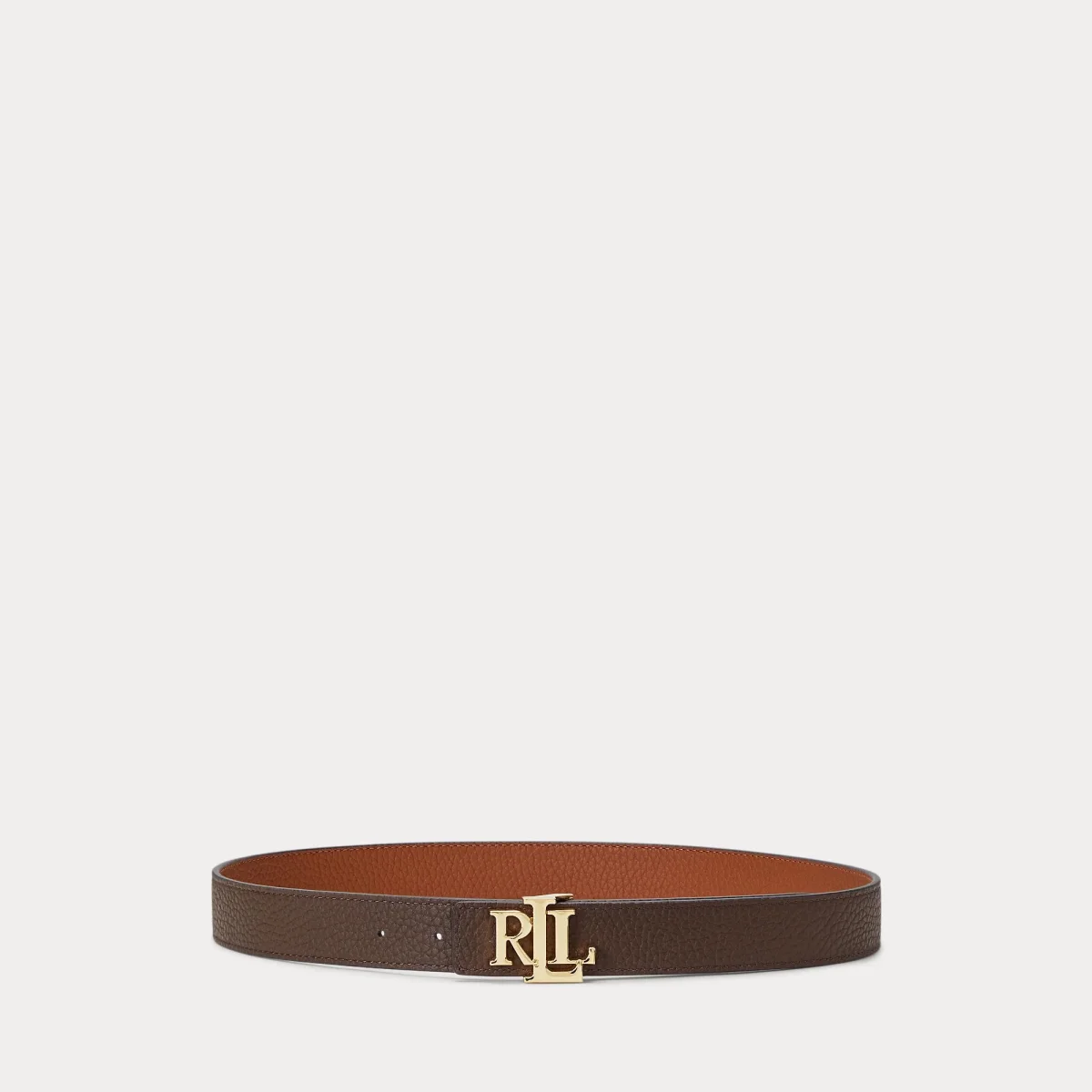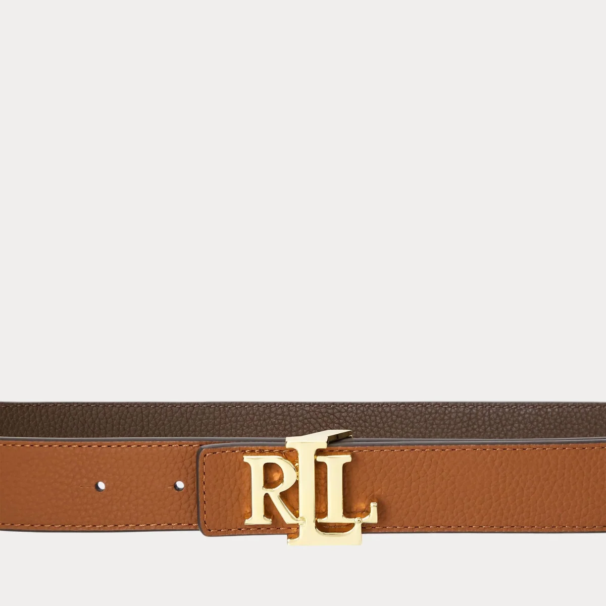 Cintura reversibile Ralph Lauren, modello bicolor con logo in contrasto metallizzato argento, colore marrone e cuoio. 100% pelle di mucca