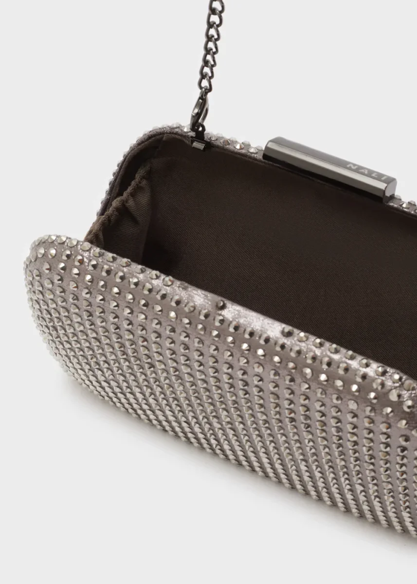 Clutch Nalì donna, modello con applicazione luminosa in contrasto all over, colore argento