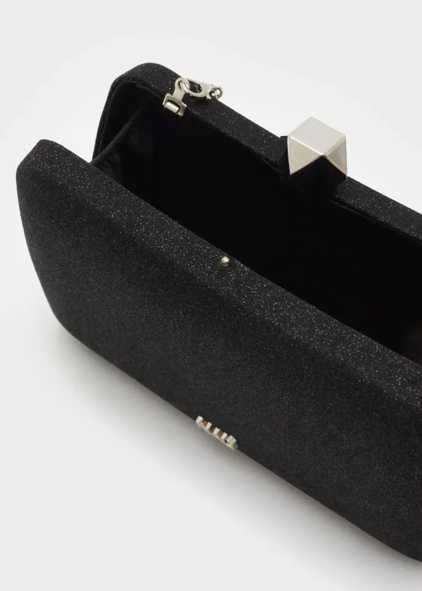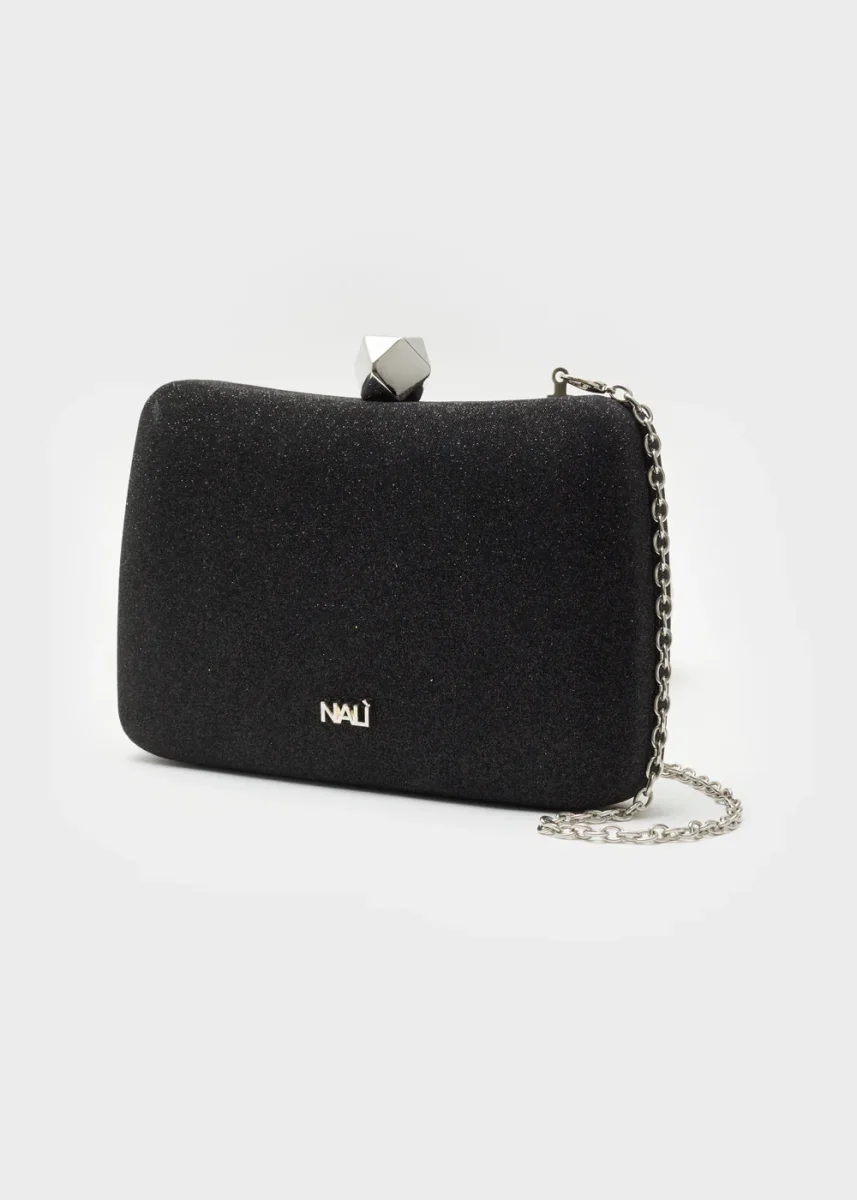Clutch rettangolare Nalì, con chiusura sfaccettata e finish brillantinato, con comoda tracolla removibile, colore nero