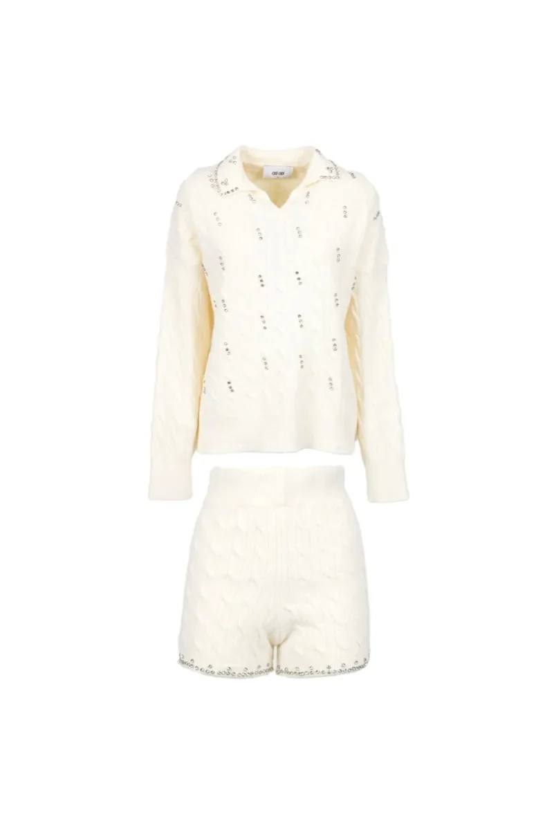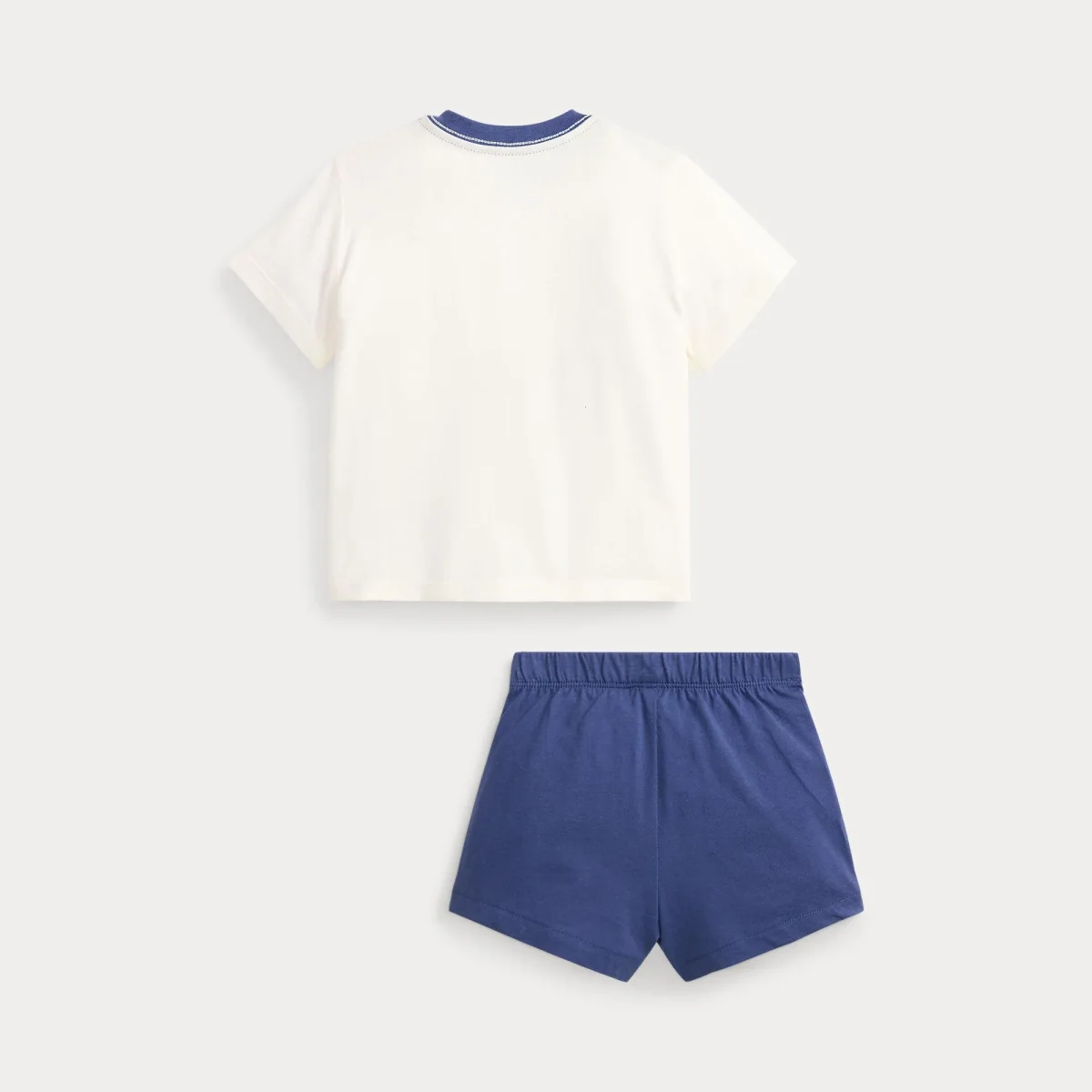 Completo due pezzi con t-shirt e pantaloncini in jersey di cotone con orso Polo Bear in contrasto, pantaloncino con short elasticizzato