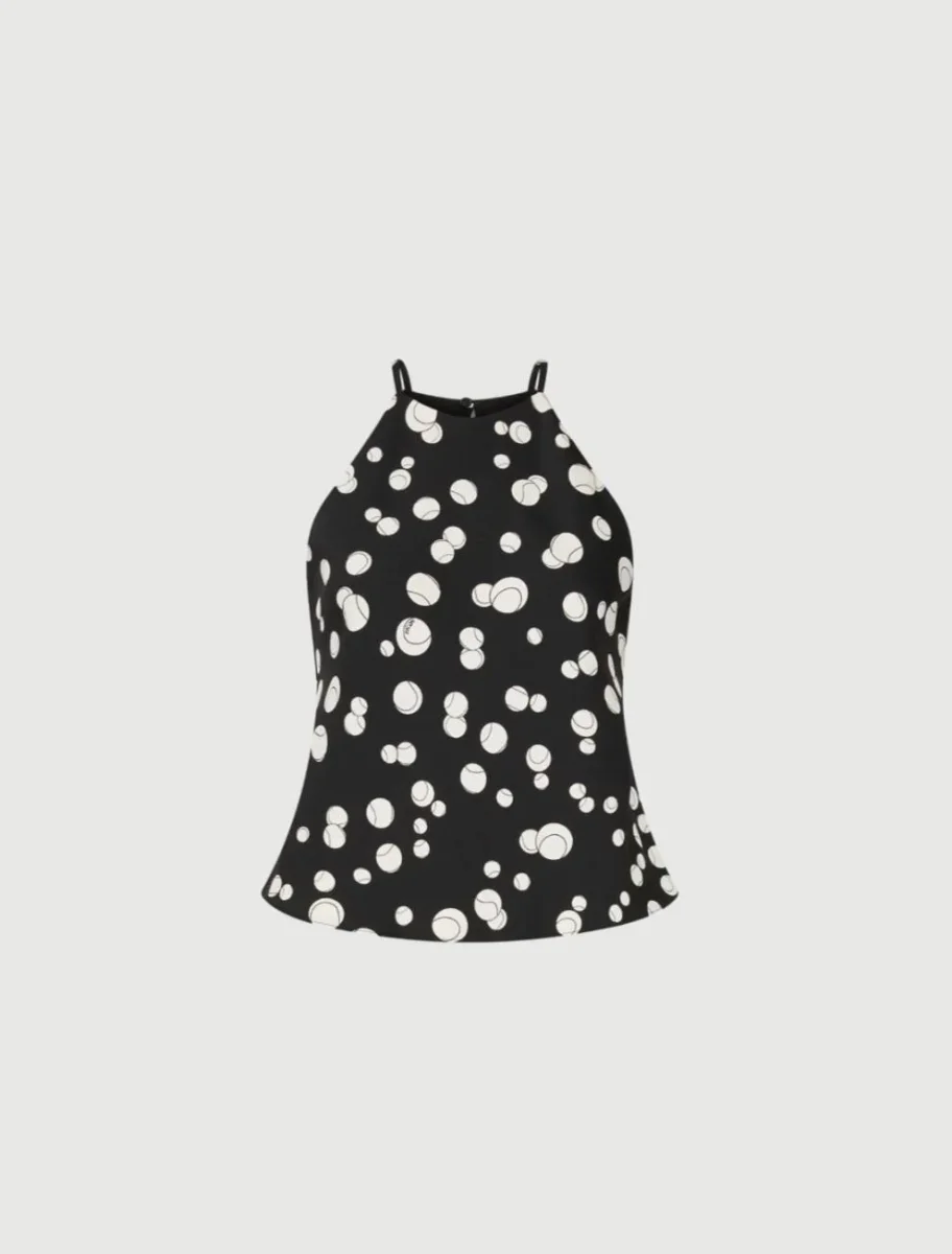 Top smanicato Marella, fantasia 365 ball machine, scollo america con goccia posteriore, colore nero