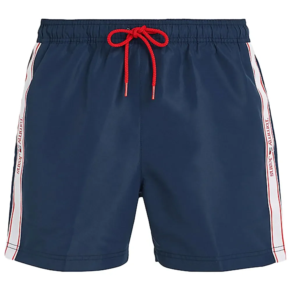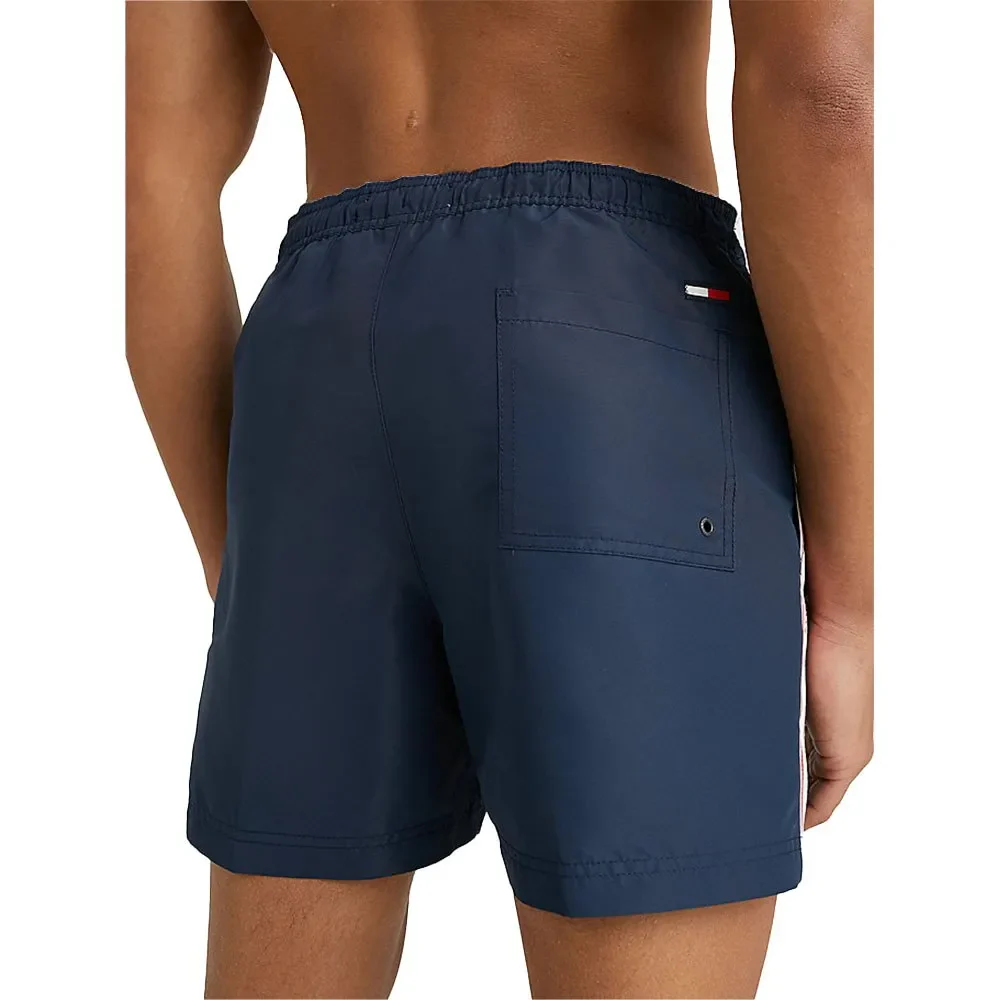 Costume Tommy Hilfiger uomo, modello lunghezza coscia, banda logata in contrasto laterale, coulisse in vita, colore blu