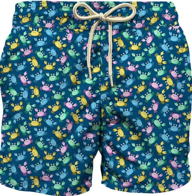 Costume Jean Lighting Mc2 Saint Barth bambino, modello a pantaloncino con coulisse in vita, stampa iconica granchio in contrasto, colore blu