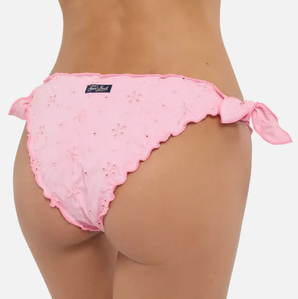 Costume slip mare Moon a vita media, tessuto in pizzo sangallo, colore rosa