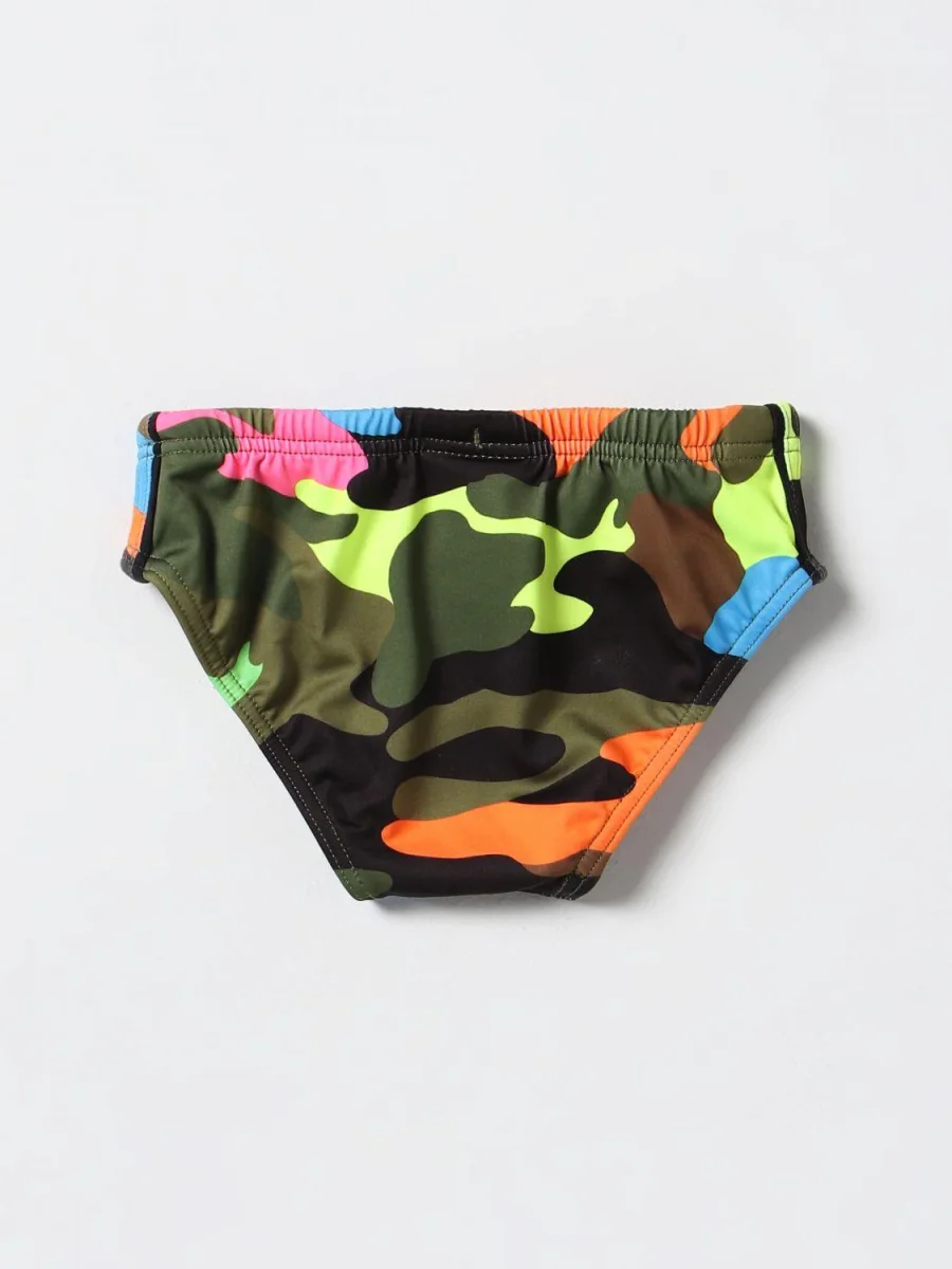Costume modello slip Mc2 Saint Barth, vestibilità regolare, motivo camouflage all over a contrasto, vita regolare, patch logo applicata