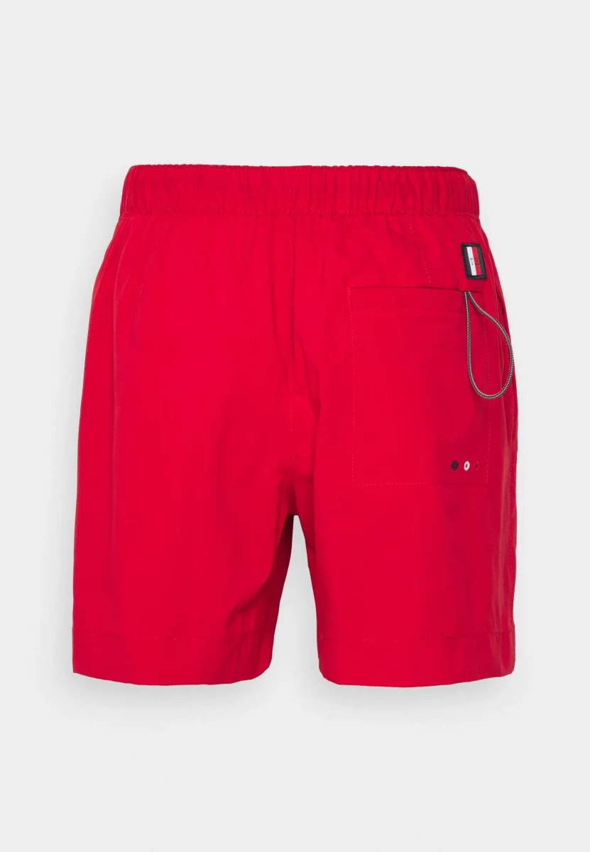 Costume uomo Tommy Hilfiger, modello media lunghezza, vita elasticizzata con lacci, tasca applicata sul retro, nastro iconico in contrasto su un lato. Colore rosso