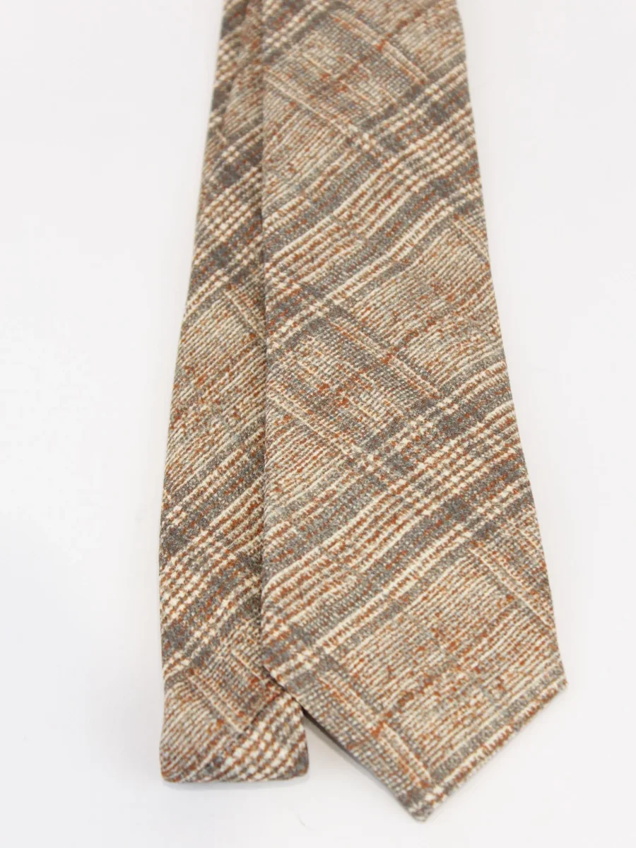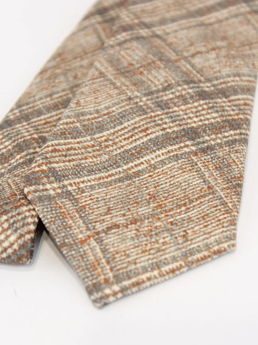 Cravatta Gierre Milano, modello effetto tartan check con sfumature arancioni, realizzata in 100% seta e made in Italy
