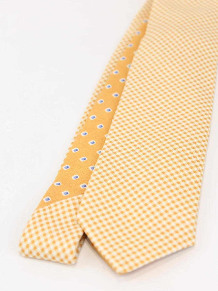 Cravatta double in seta, modello con doppia fantasia avanti e dietro in contrasto, made in Italy