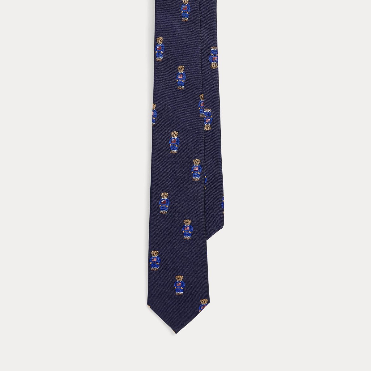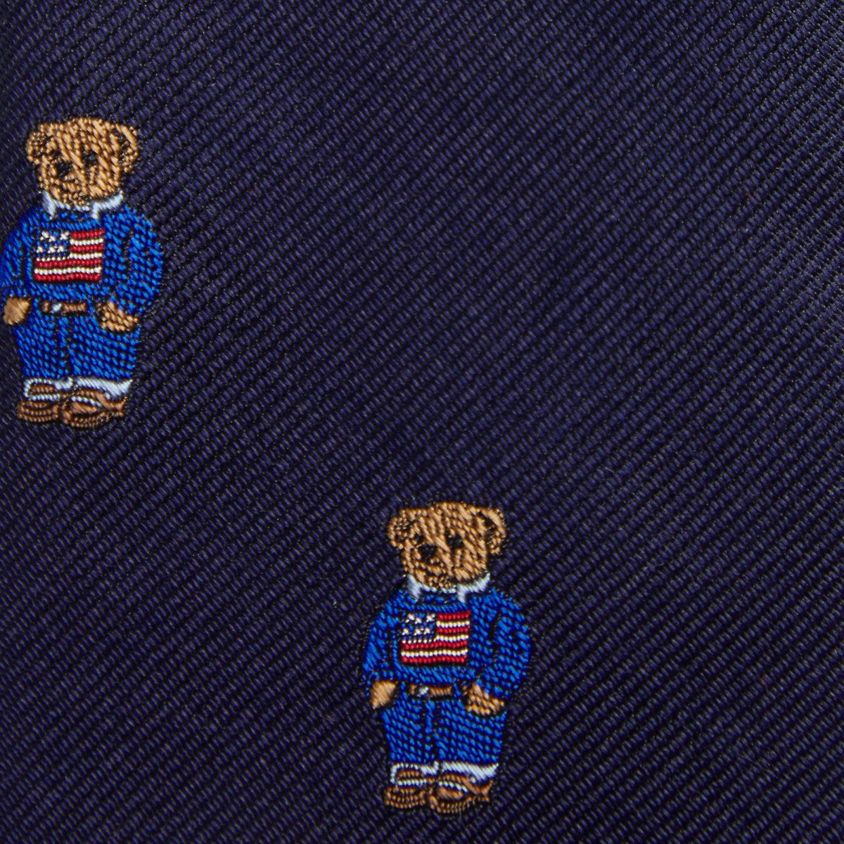 Cravatta in twill di seta Ralph Lauren bimbo, modello con orsetto iconico Ralph Lauren in contrasto, colore blu